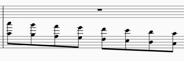 ドレミファソラシドに音が上昇するケースが弾けたら、ドシラソファミレドに音が下降するケースも弾いてみましょう。